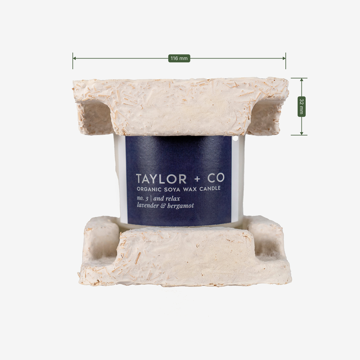 The protectors keep your candle products safe and secure while on their way to your customers. They have an internal height of 20mm, which fits around the top and bottom of the candle. The tough blended mycelium is a cushioning frame for any bumps and knocks that deliveries give us from time to time—as good or better than traditional packing methods.